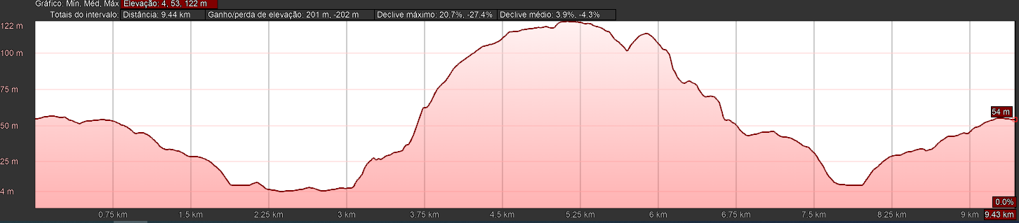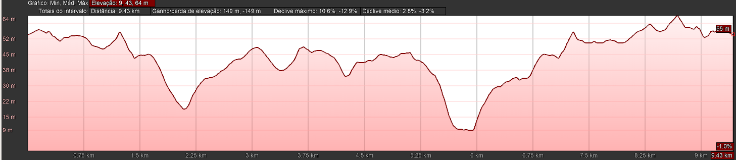 A caminhada tem a distância de 10 km, e tem início às 09:55 horas.